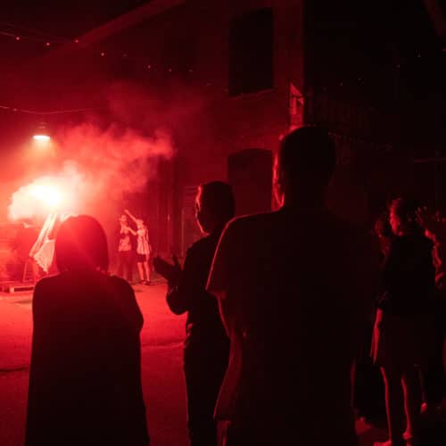 Standing ovation ce dimanche devant la dernière représentation de La vie est une fête des Chiens de Navarre …. Une belle image pour clôturer cette 21ème édition du Festival au carré… Poésie, rencontres artistiques insolites, voyages aux 4 coins de la ville, tranches de rires, retrouvailles chaleureuses sous les lampions, danse jusqu’au bout de la nuit, conversations intimes au bord d’un lit…Que d’émotions ! Nous vous proposons de les revivre en images ci-dessous et de parcourir la revue de presse ici.