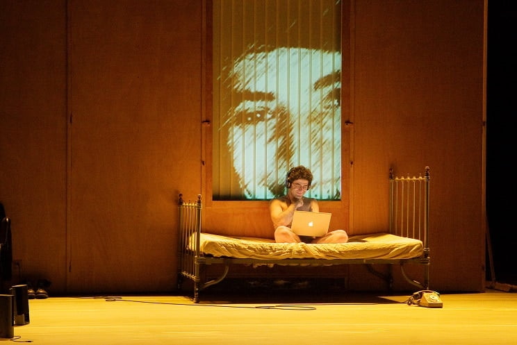Harwan, étudiant montréalais, est sur le point de s’envoler vers Saint-Pétersbourg à la rencontre du metteur en scène Robert Lepage, sujet de sa thèse, quand il apprend que son père est plongé dans le coma. Une succession d’événements le mène à se confronter à lui-même et à ses choix de vie. Impossible de ne pas assimiler le héros de ce spectacle à son auteur, Wajdi Mouawad, avec lequel il partage beaucoup de points communs. Une plongée dans les profondeurs d’un esprit déraciné, sublimée par une scénographie millimétrée où les projections vidéo font tomber les barrières du réel.