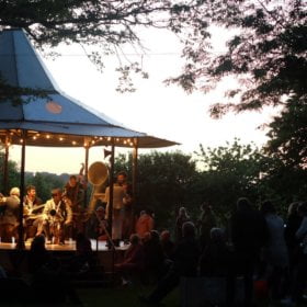 VibratO, une expérience sonore, musicale et humaine. Un kiosque à musique rempli d’instruments...